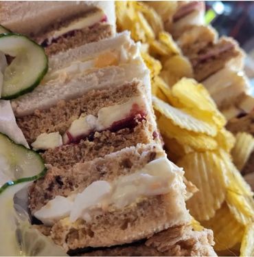 A delicious afternoon tea consisting of a selection of sandwiches of your choice, scrumptious scones with clotted cream and jam, mini savoury and lots of sumptuous home made cakes.